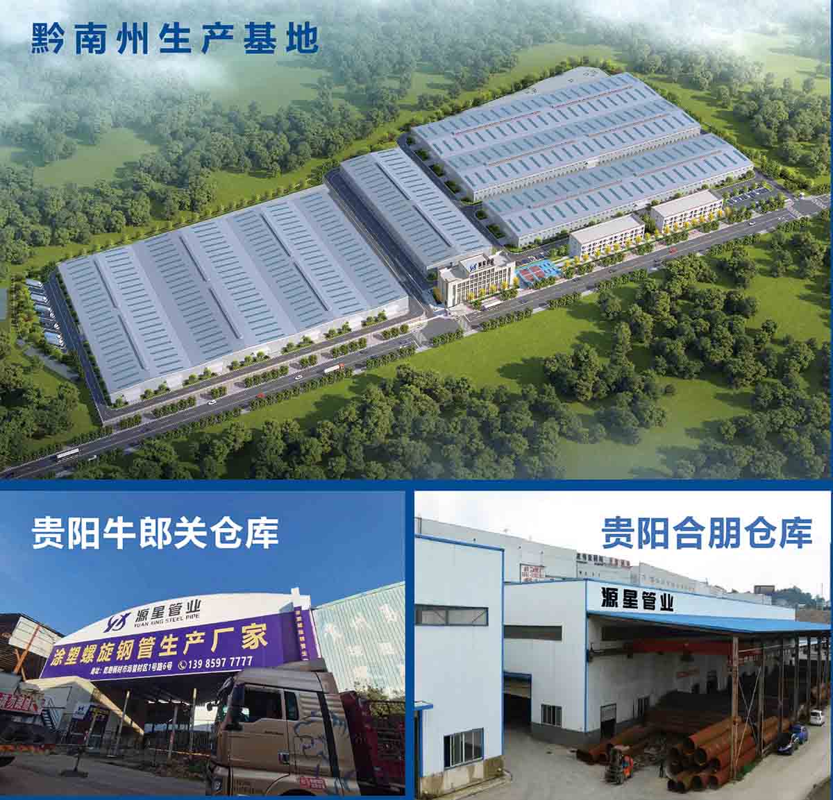 公司擁有三條螺旋鋼管生產(chǎn)線(xiàn),一條涂塑生產(chǎn)線(xiàn)。生產(chǎn)基地坐落于貴州省黔南州長(zhǎng)順縣廣順鎮(zhèn),占地30000平方米;并在花溪合朋及乾朗鋼材市場(chǎng)設(shè)有1 0000平方米倉(cāng)庫(kù),常備各規(guī)格螺旋鋼管現(xiàn)貨庫(kù)存10000噸。